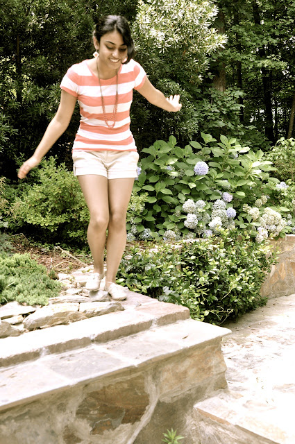 Outfit details: Ann Taylor Loft t-shirt, F21 belt, Old Navy necklace, skirt (from India), Bronx Heat of the Nite flats (from Nordstrom)